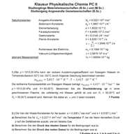 AnsehenKlausur - PC II SS17.pdfPhysikalische Chemie II (Thermodynamik u. Elektrochemie), fuer Ingenieurwissenschaften