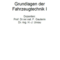 Fahrzeugtechnik Kurse & VorlesungenFahrzeugtechnikUniversität Duisburg-Essen822372Fahrzeugtechnik und -sicherheit VOTechnische Universität Graz318527Fahrzeugtechnik IRWTH Aachen468151962