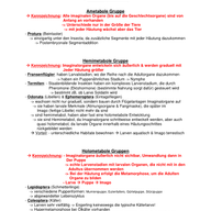 Zusammenfassung 6. Vorlesung (Arthropoda, Arachnida, Crustacea, Insecta, hemimetabol und homometabol).pdf