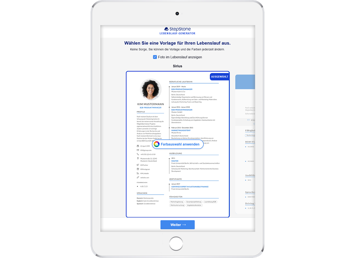 Übrigens: Wenn du noch keinen Lebenslauf hast, kannst du dir hier ganz schnell und einfach einen richtig gut aussehenden CV erstellen.