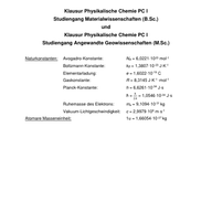Grundlagen der Physikalischen Chemie (Biologie und Biotechnologie)